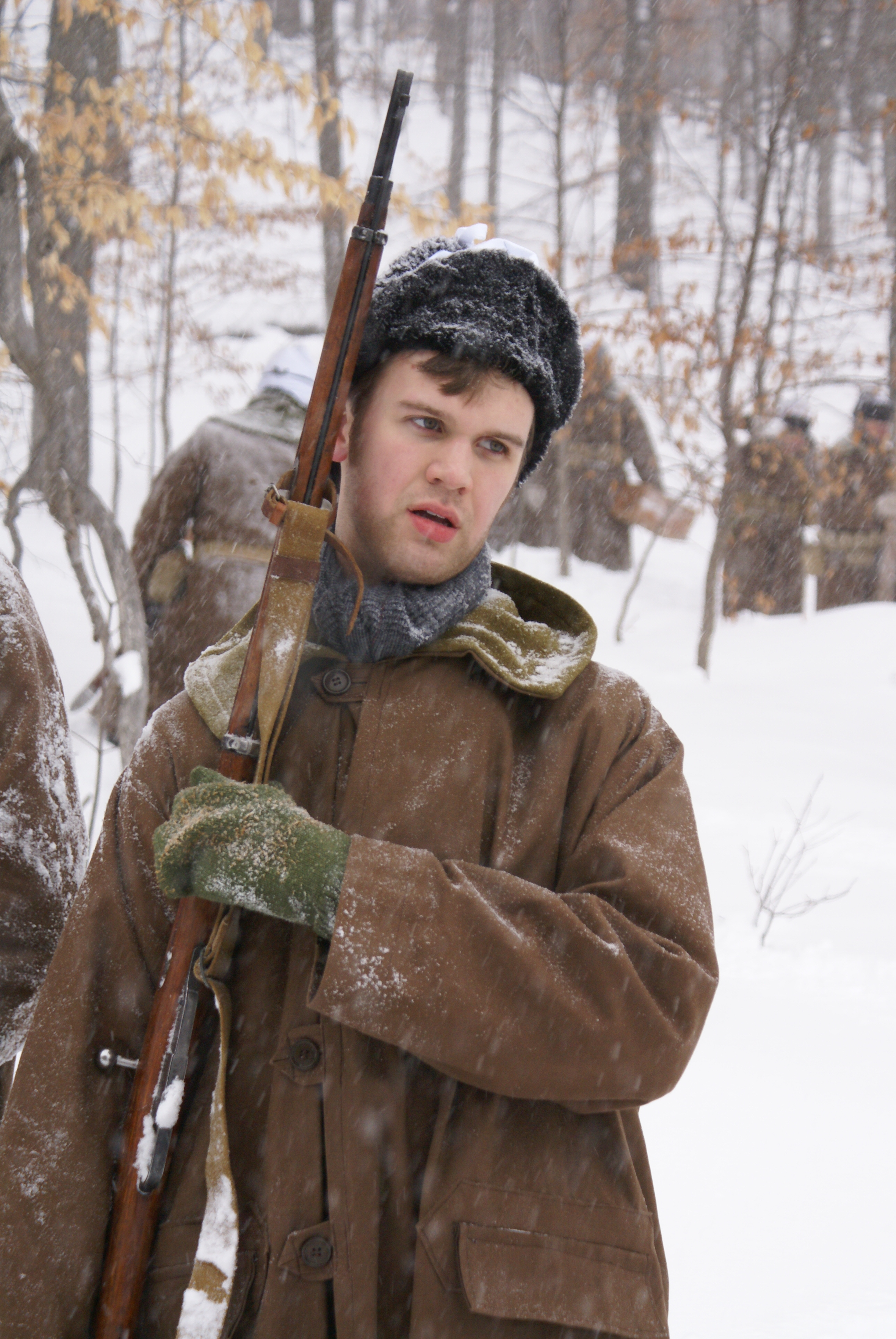 National and MI scholar/actor Ben Topping plays young Cprl. John Toornman who loses two close friends in this tragic battlescene re-enactment from The Battle of Pinega. |